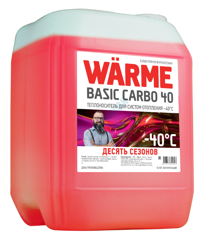 Теплоноситель этиленгликоль WARME Basic Carbo 40 43 кг (10 лет эксплуатации)