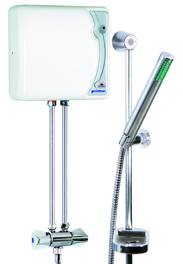 Медные нагревательные элементы. Надежная технология изготовления нагревательных элементов в медном корпусе гарантирует долговечность, невосприимчивость к содержанию в воде воздуха и загрязнений. Мелкоструйная душевая трубка. Мелкоструйная душевая трубка обеспечивает комфорт пользования и экономнию при расходе воды и электроэнергии на около 50%. Регулировочный клапан. Регулировочный клапан позволяет ограничить величину максимального протока и получить требуемую температуру воды на выходе. Водонагреватель является безнапорным прибором, может совместно работать только со специальным трехходовым смесителем, имеющимся в комплекте водонагревателя.
