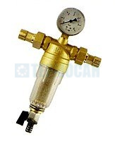 Полное наименование: Фильтр промывной TIM с манометром стеклянный корпус 1/2", нар-нар
