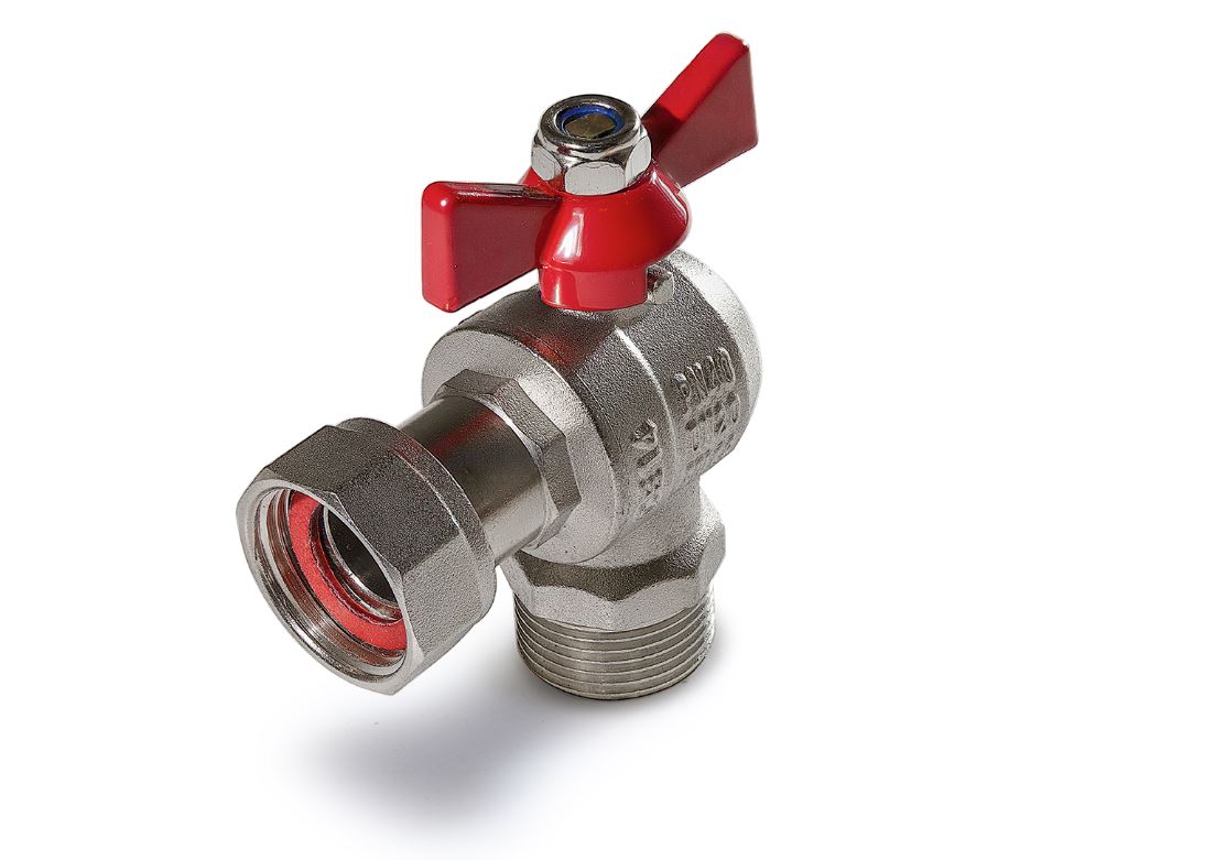 —TIM Кран шаровой с накидной гайкой УГЛОВОЙ, НР/накидная гайка, ручка бабочка 3/4" (12/48)