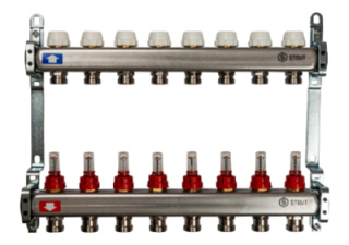 Полное наименование: Коллекторная группа STOUT 1" из нерж. стали с расходомерами, 2 вых.