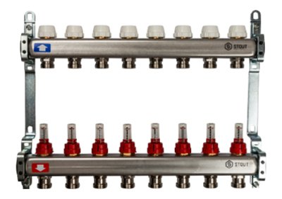 —Коллекторная группа STOUT 1" из нерж. стали с расходомерами, 10 вых.