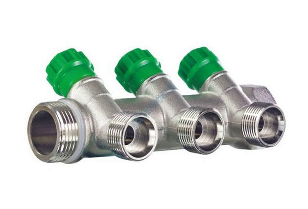 —Коллектор с регулирующими вентилями (кран-буксами) TIM 1" х 3/4 под евроконус - 3 вых. (5/20)