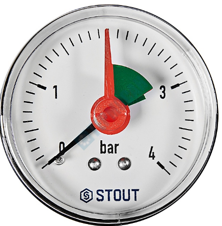 —STOUT Манометр аксиальный с указателем предела. Корпус Dn 63 мм 1/4 , 0...4 бар, кл.2.5