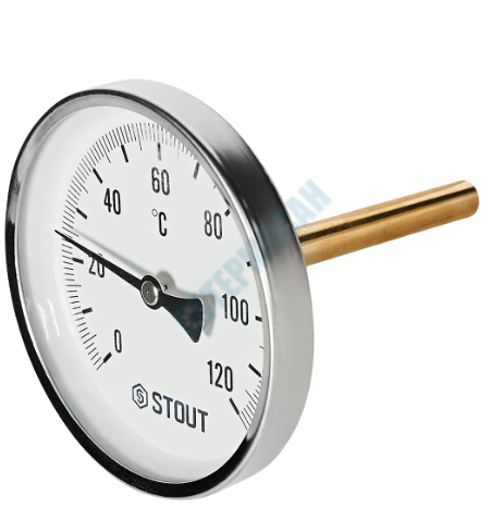 —STOUT Термометр биметаллический с погружной гильзой. Корпус Dn 100 мм, гильза 50 мм 1/2 , 0...120°С