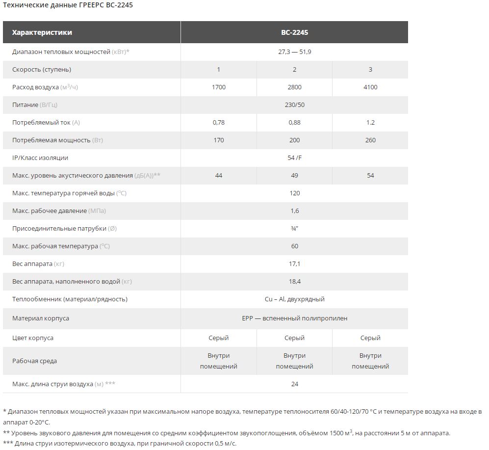 Тепловентилятор ГРЕЕРС ВС-2245 с 3-х скоростным двигателем P54 и монтажной консолью